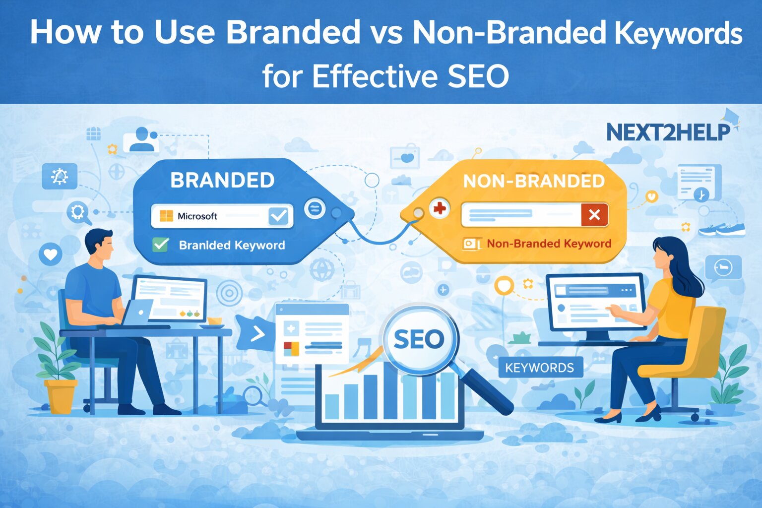 Non-branded keywords, on the other hand, do not include your business name. Instead, these are general search terms related to the industry or services you offer, but without any specific brand association. For example, a non-branded keyword for an electronics business could be “best laptops” or “affordable laptops.”